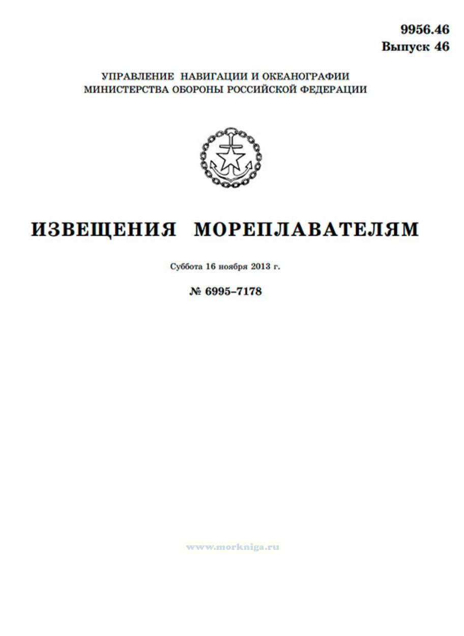 Извещения мореплавателям. Выпуск 46. № 6995-7178 (от 16 ноября 2013 г.) Адм. 9956.46