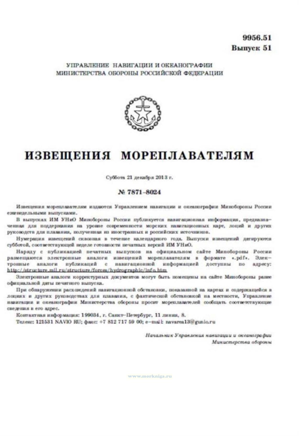 Извещения мореплавателям. Выпуск 52. № 8025-8216 (от 28 декабря 2013 г.) Адм. 9956.52