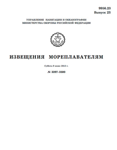 Извещения мореплавателям. Выпуск 23. № 3397-3500 (от 9 июня 2012 г.) Адм. 9956.23