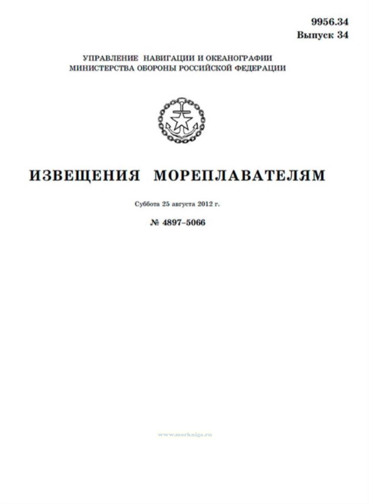 Извещения мореплавателям. Выпуск 34. № 4897-5066 (от 25 августа 2012 г.) Адм. 9956.34