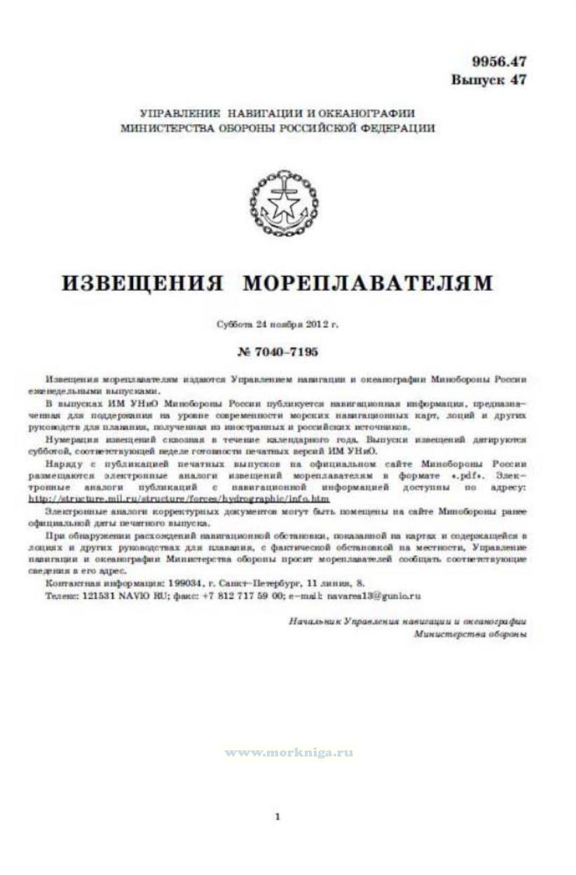 Извещения мореплавателям. Выпуск 47. № 7040-7195 (от 24 ноября 2012 г.) Адм. 9956.47