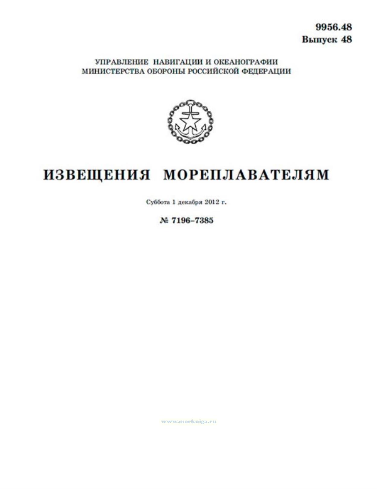 Извещения мореплавателям. Выпуск 48. № 7196-7385 (от 1 декабря 2012 г.) Адм. 9956.48