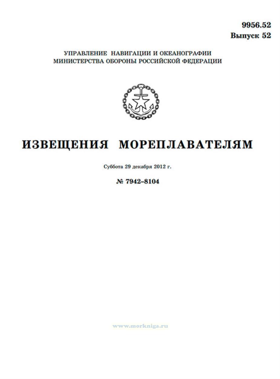 • Извещения мореплавателям. Выпуск 52. № 7942-8104 (от 29 декабря 2012 г.) Адм. 9956.52