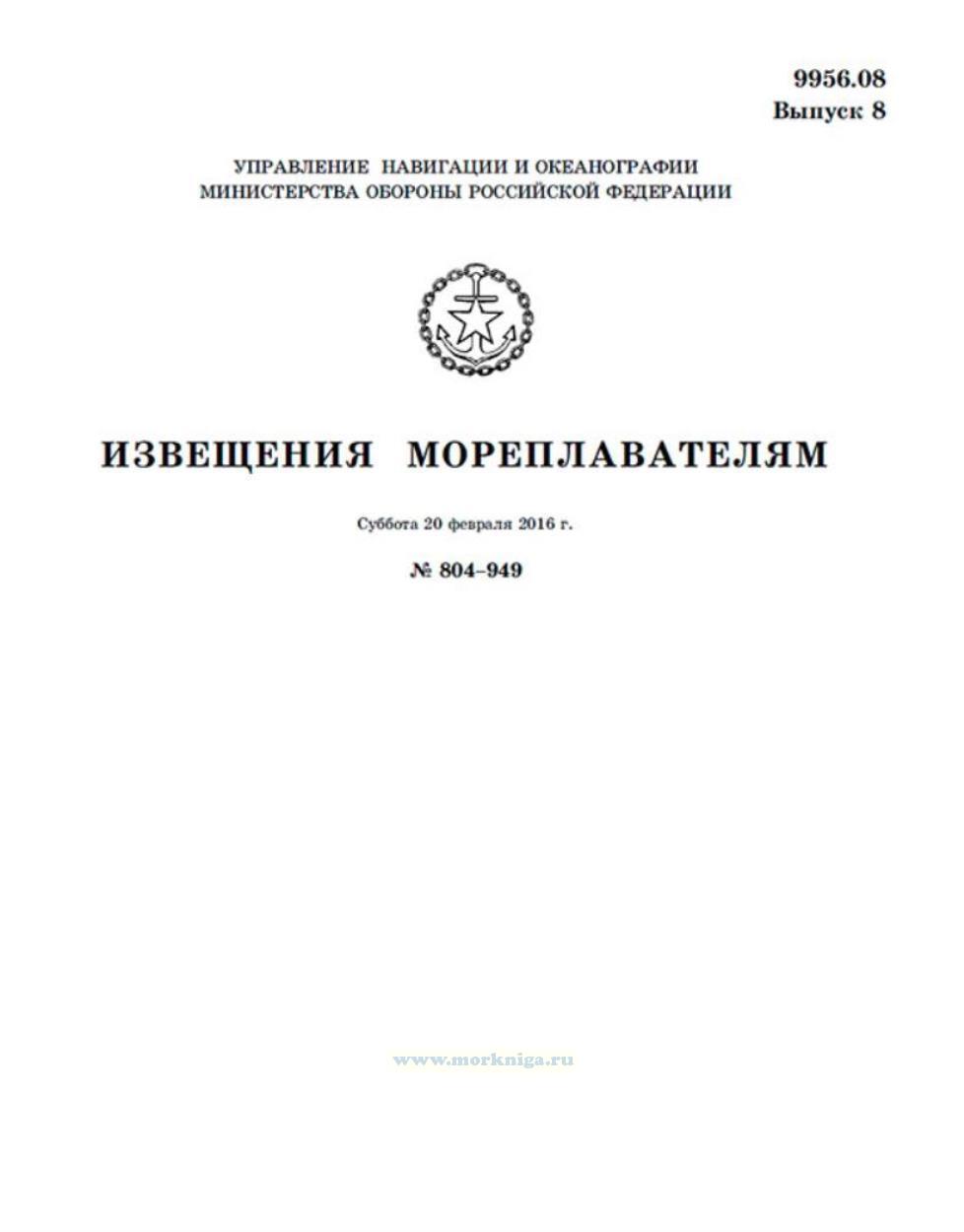 Извещения мореплавателям. Выпуск 8. № 804-949 (от 20 февраля 2016 г.) Адм. 9956.08