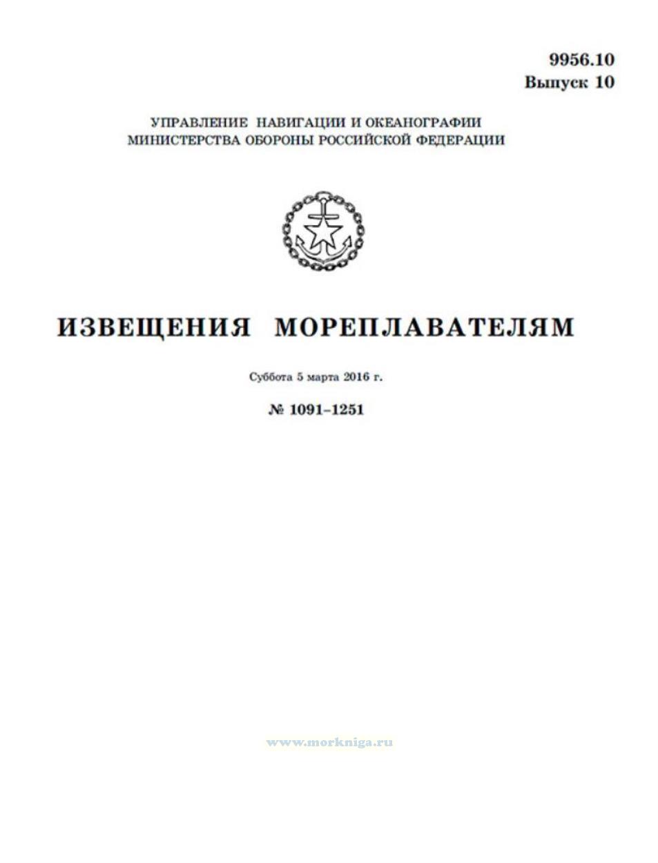 Извещения мореплавателям. Выпуск 10. № 1091-1251 (от 5 марта 2016 г.) Адм. 9956.10
