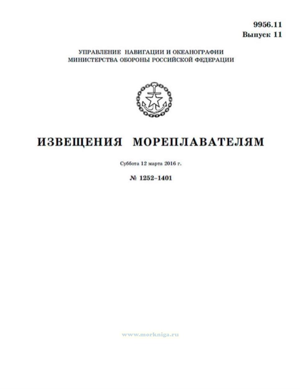 Извещения мореплавателям. Выпуск 11. № 1252-1401 (от 12 марта 2016 г.) Адм. 9956.11