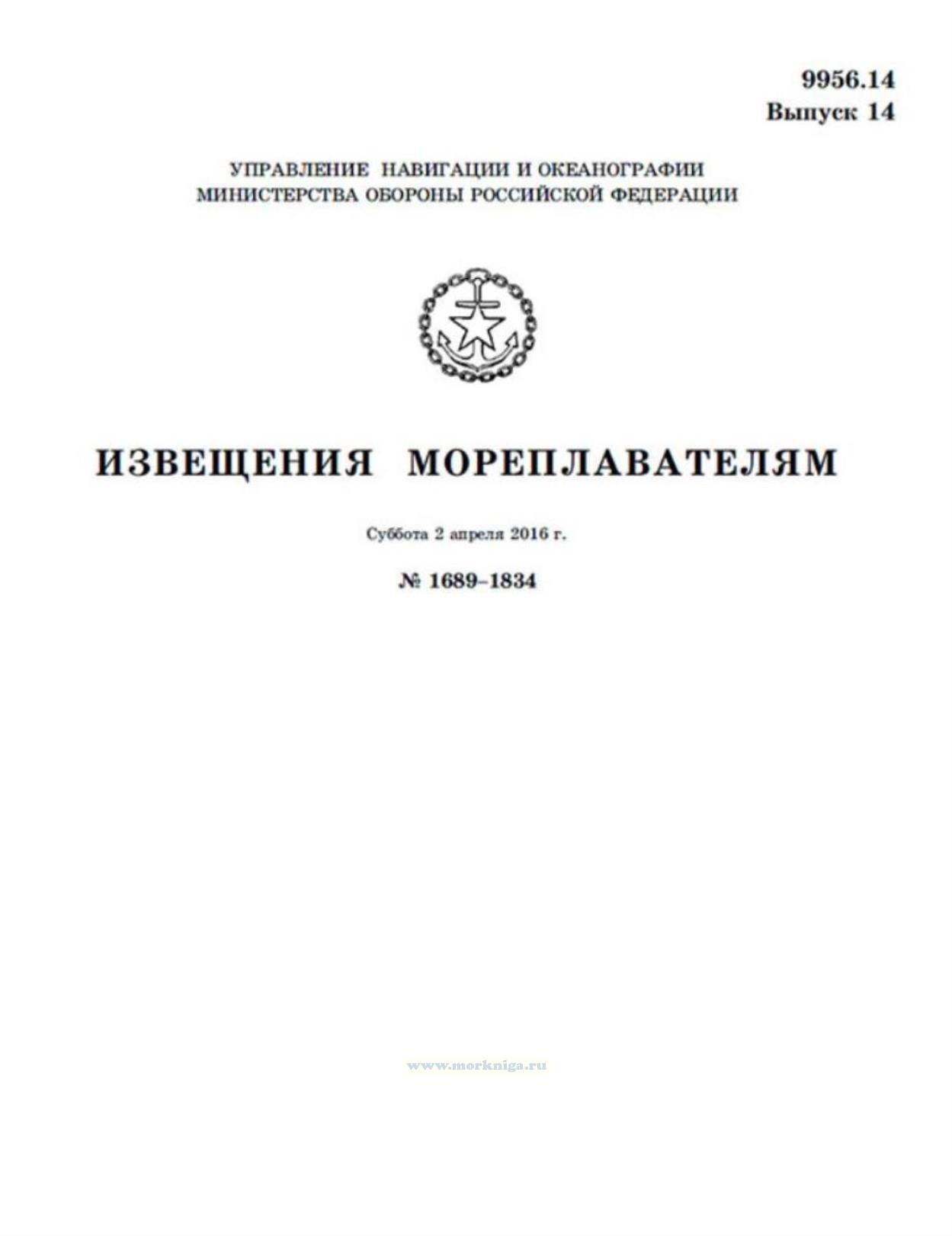 Извещения мореплавателям. Выпуск 14. № 1689-1834 (от 4 апреля 2016 г.) Адм. 9956.14
