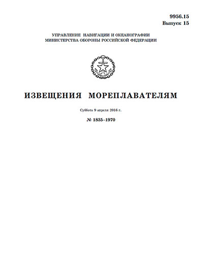 Извещения мореплавателям. Выпуск 15. № 1835-1970 (от 9 апреля 2016 г.) Адм. 9956.15