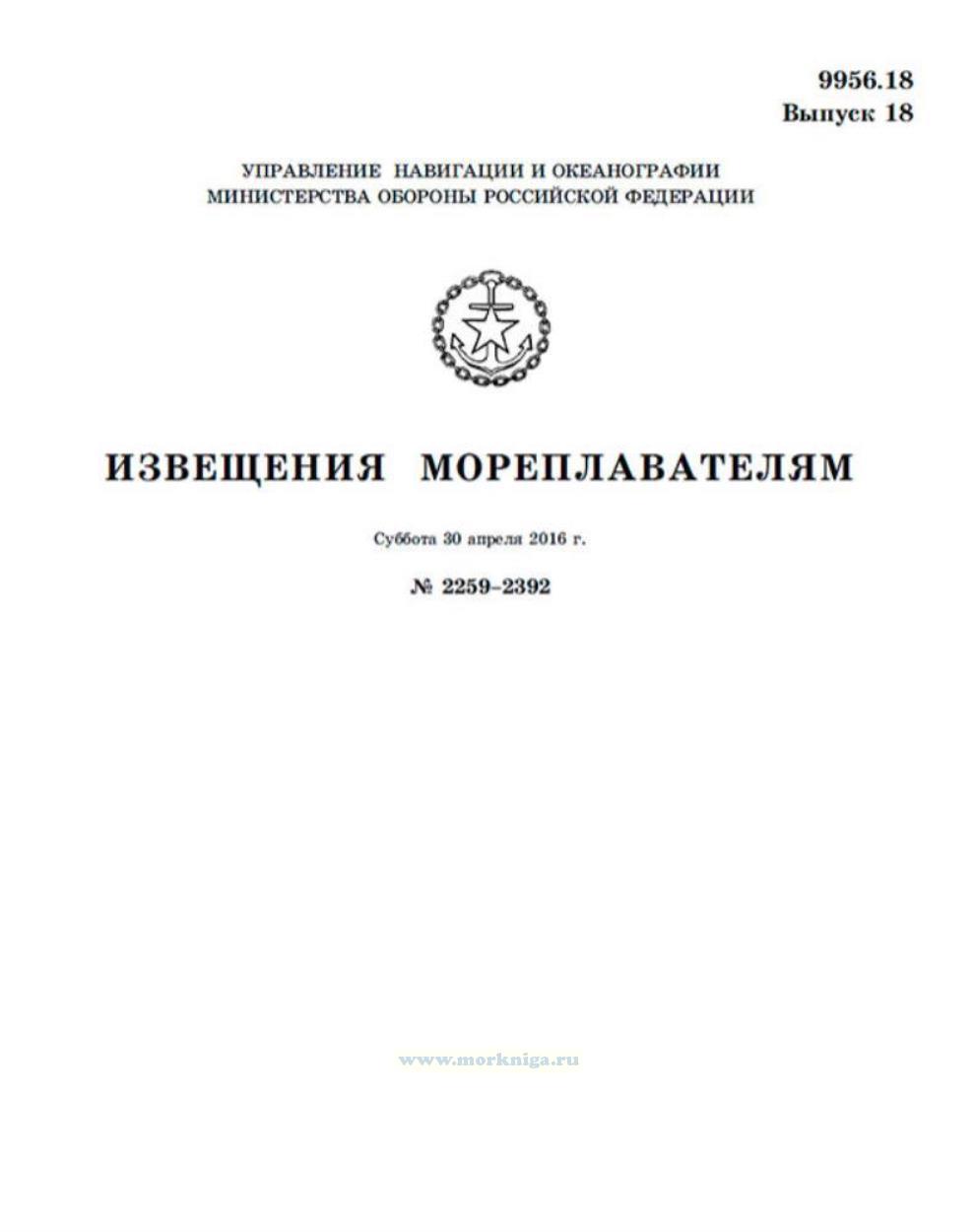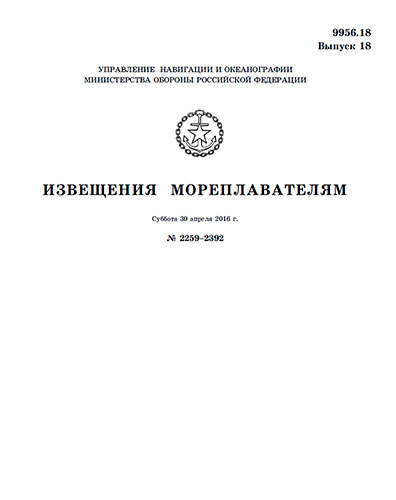 Извещения мореплавателям. Выпуск 18. № 2259-2392 (от 30 апреля 2016 г.) Адм. 9956.18