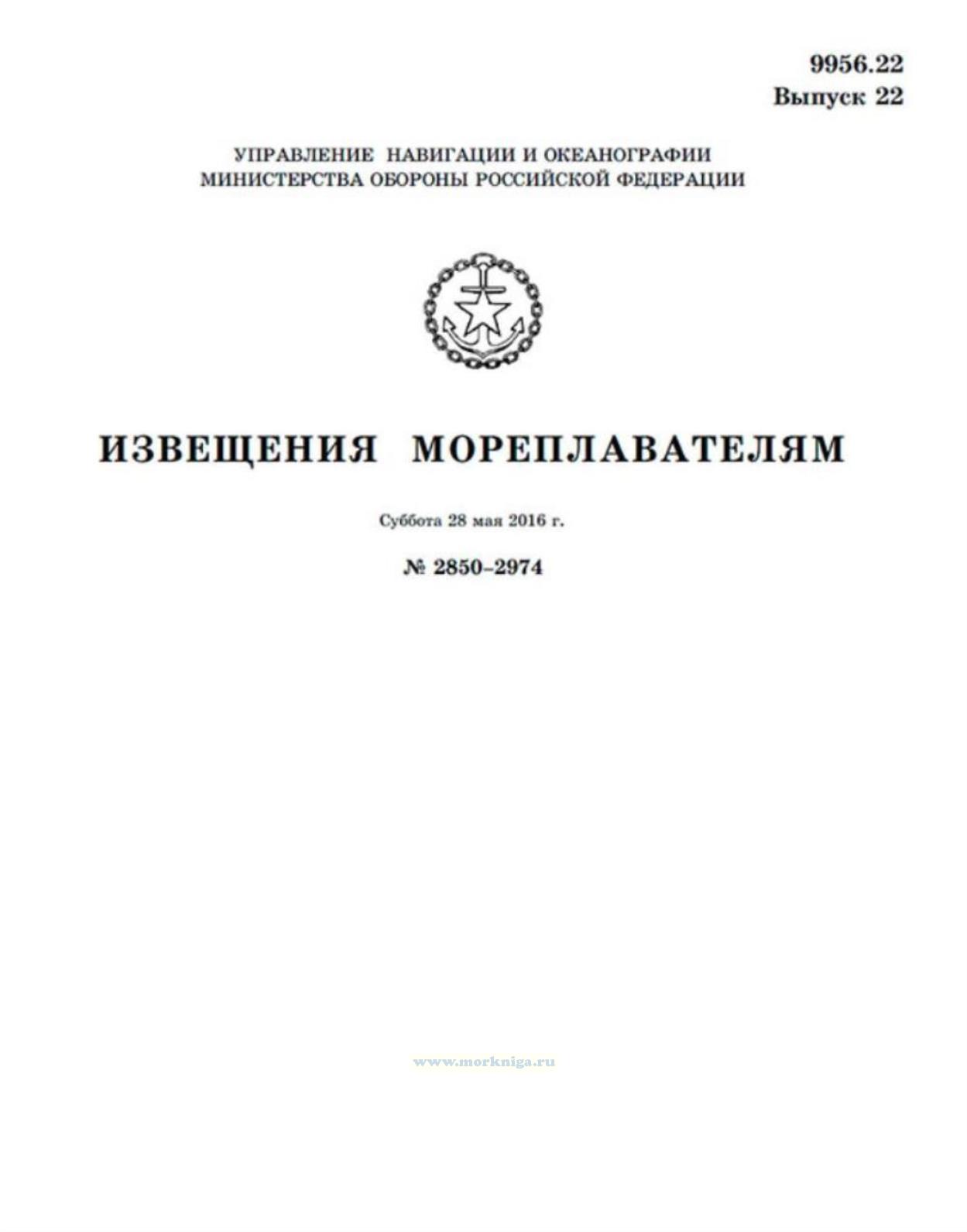 Извещения мореплавателям. Выпуск 22. № 2850-2974 (от 28 мая 2016 г.) Адм. 9956.22