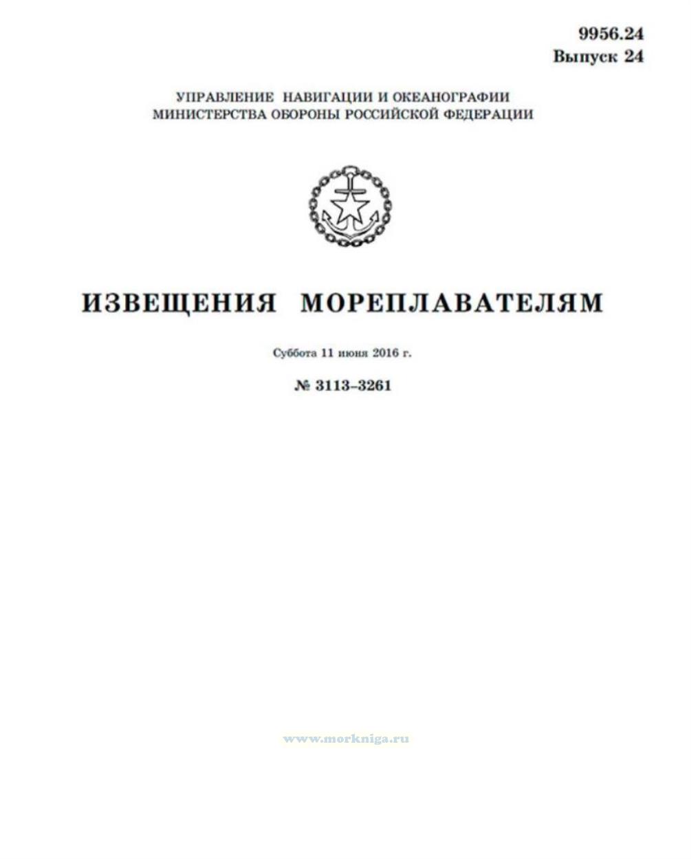 Извещения мореплавателям. Выпуск 24. № 3113-3261 (от 11 июня 2016 г.) Адм. 9956.24