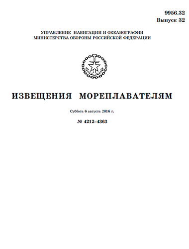 Извещения мореплавателям издаются Управлением навигации и океанографии Минобороны России еженедельными выпусками.