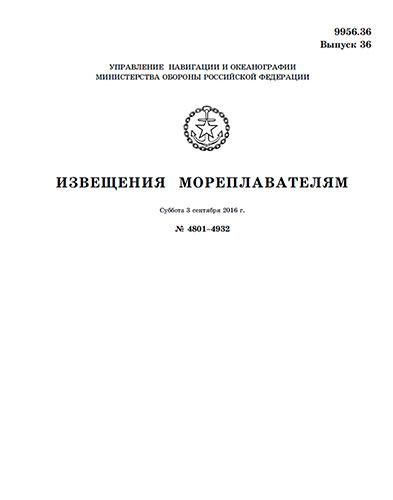 Извещения мореплавателям. Выпуск 36. № 4801-4932 (от 3 сентября 2016 г.) Адм. 9956.36