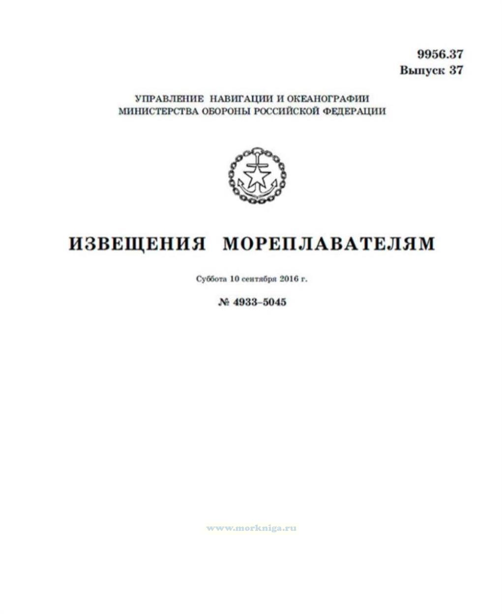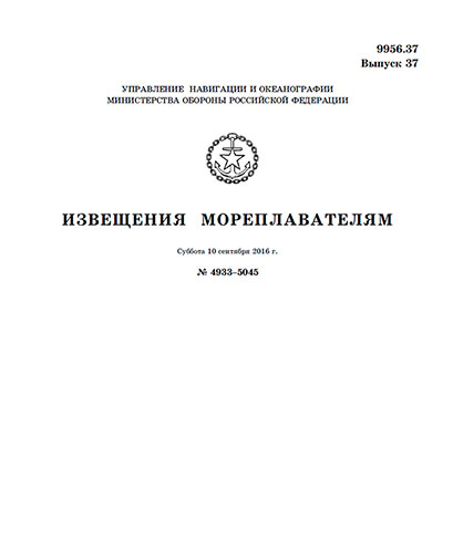 Извещения мореплавателям. Выпуск 37. № 4933-5045 (от 10 сентября 2016 г.) Адм. 9956.37