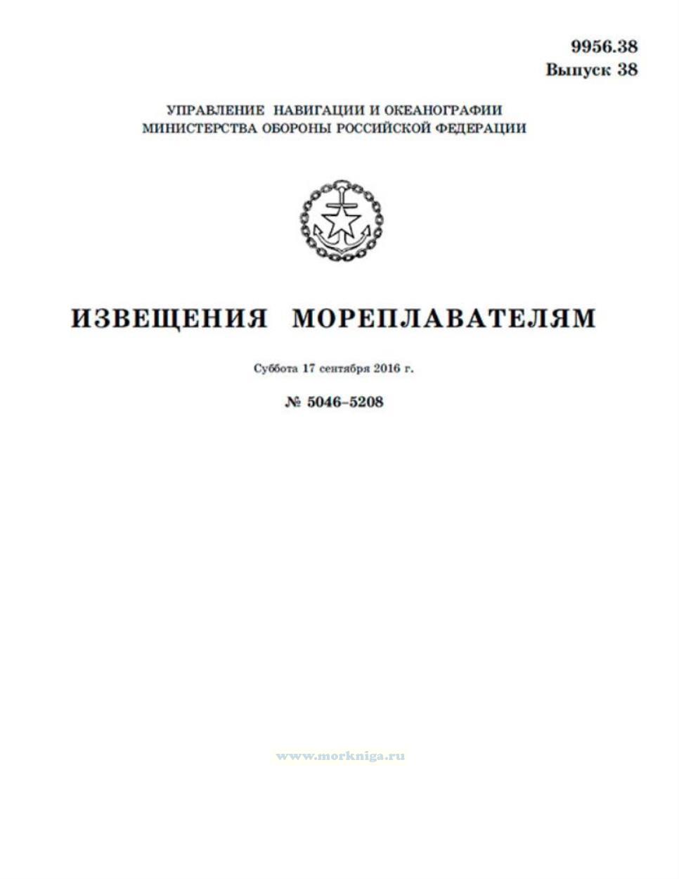 Извещения мореплавателям. Выпуск 38. № 5046-5208 (от 17 сентября 2016 г.) Адм. 9956.38