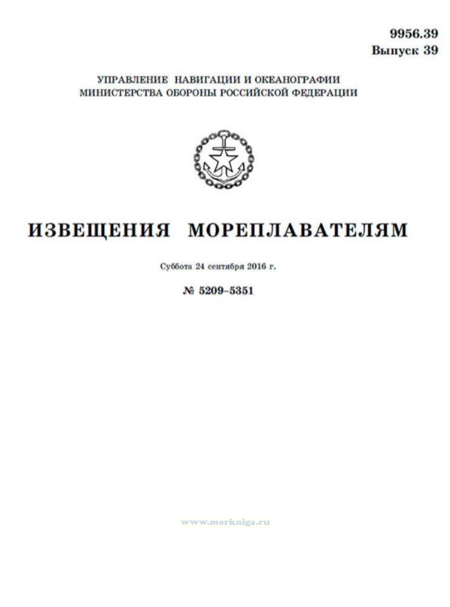 Извещения мореплавателям. Выпуск 39. № 5209-5351 (от 24 сентября 2016 г.) Адм. 9956.39