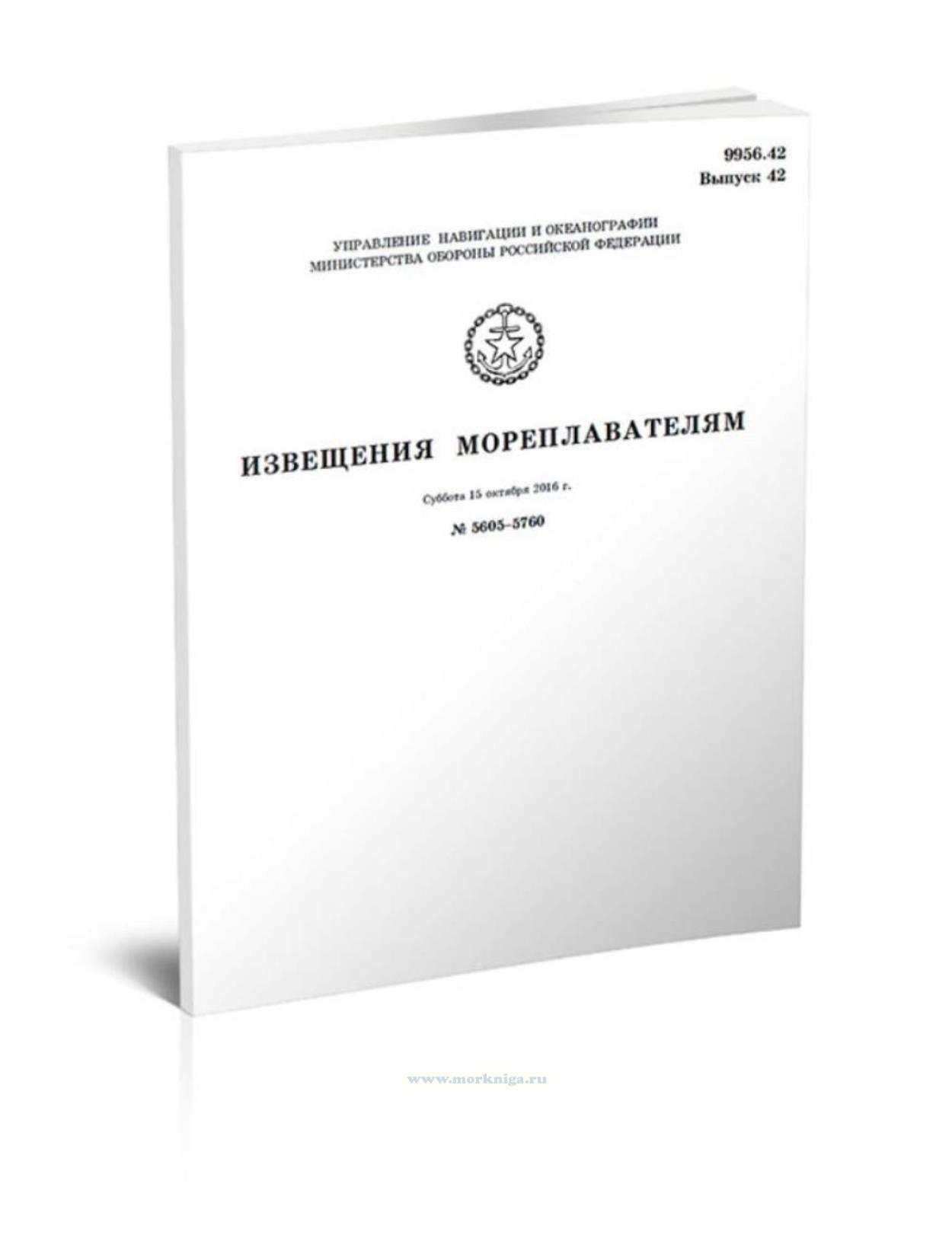 Извещения мореплавателям. Выпуск 42. № 5605-5760 (от 15 октября 2016 г.) Адм. 9956.42