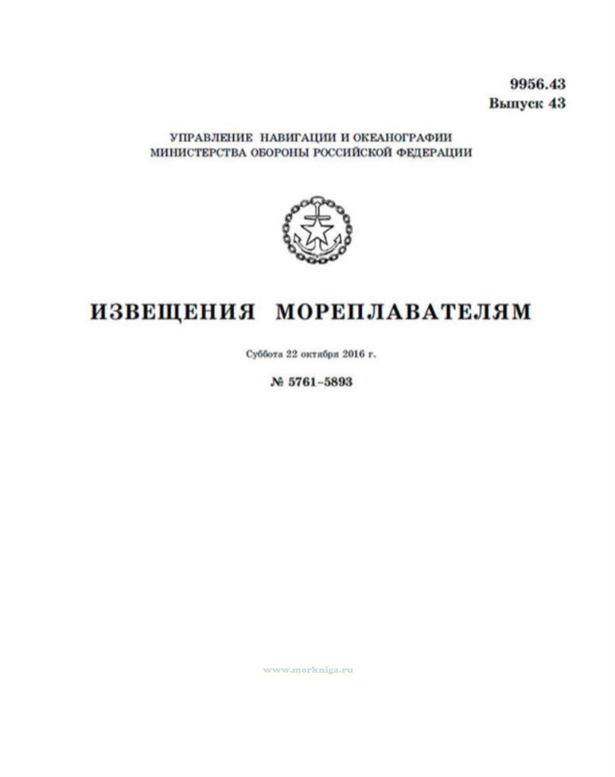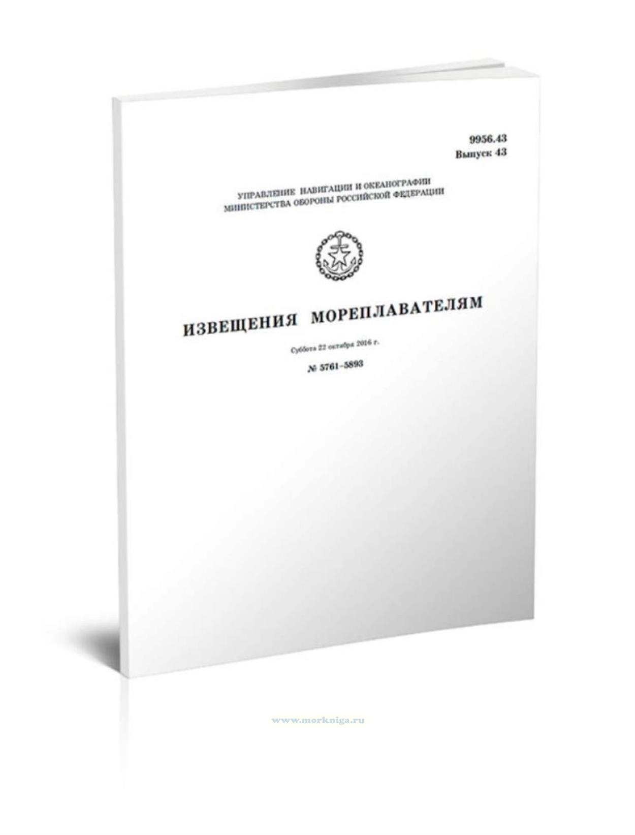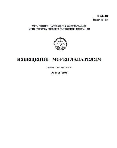 Извещения мореплавателям. Выпуск 43. № 5761-5893 (от 22 октября 2016 г.) Адм. 9956.43