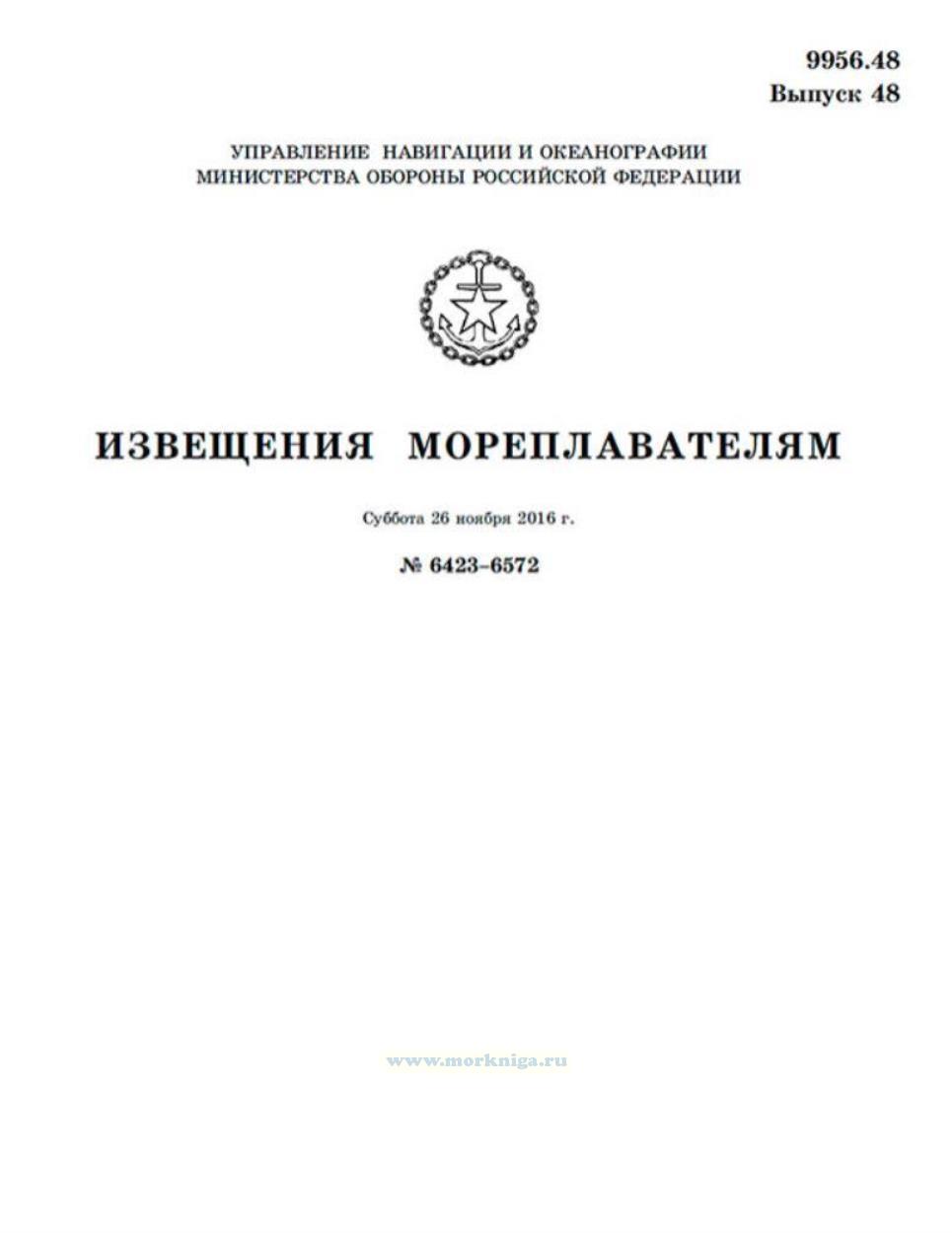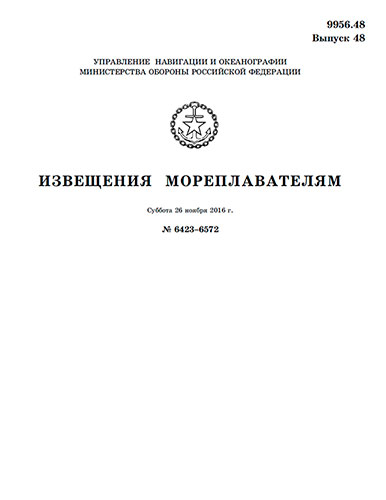 Извещения мореплавателям. Выпуск 48. № 6423-6572 (от 26 ноября 2016 г.) Адм. 9956.48