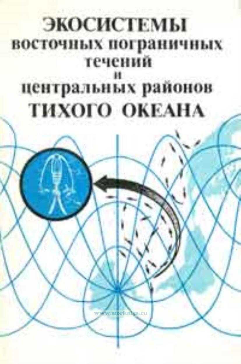 Рассмотрены структурно-функциональные характеристики экосистем пелагиали восточных пограничных течений в районах Перу, Калифорнийского полуострова и Центральной Америки, а также центральных районов северного антициклонального круговорота Тихого океана. Проведен анализ гидрофизической структуры вод этих районов, полей основных химических элементов (кислорода, всех форм растворенного и взвешенного азота и фосфора, карбонатной системы), оптического и биолюминесцентного полей. Оценены состав, численность, биомасса и продукция (экспериментально или расчетным способом) всех элементов биологических сообществ: пико- нано- и крупного фитопланктона, бактерий, наногетеротрофов, инфузорий, различных групп мезоплвнктона и микронектона. Специальное внимание обращено на адаптацию сообществ и популяций массовых видов к условиям перемежающихся апвеллингов и среднеглубинному слою кислородного дефицита.