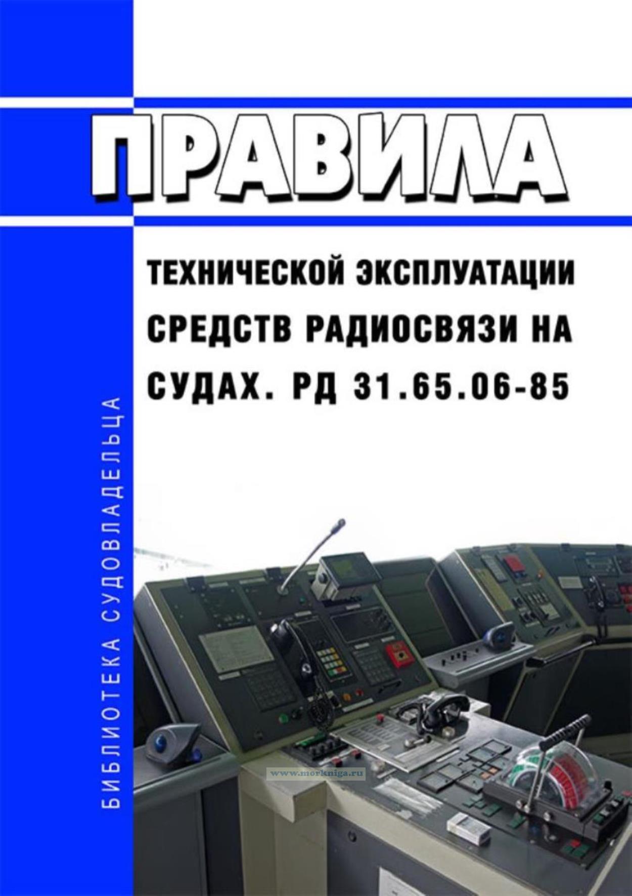 Настоящий руководящий документ "Правила технической эксплуатации средств радиосвязи на судах" РД 31.65.06-85 является основным документом по организации технической эксплуатации средств радиосвязи на судах Министерства морского флота. В РД определены организация, общие принципы и различные виды технического обслуживания судовых средств радиосвязи.