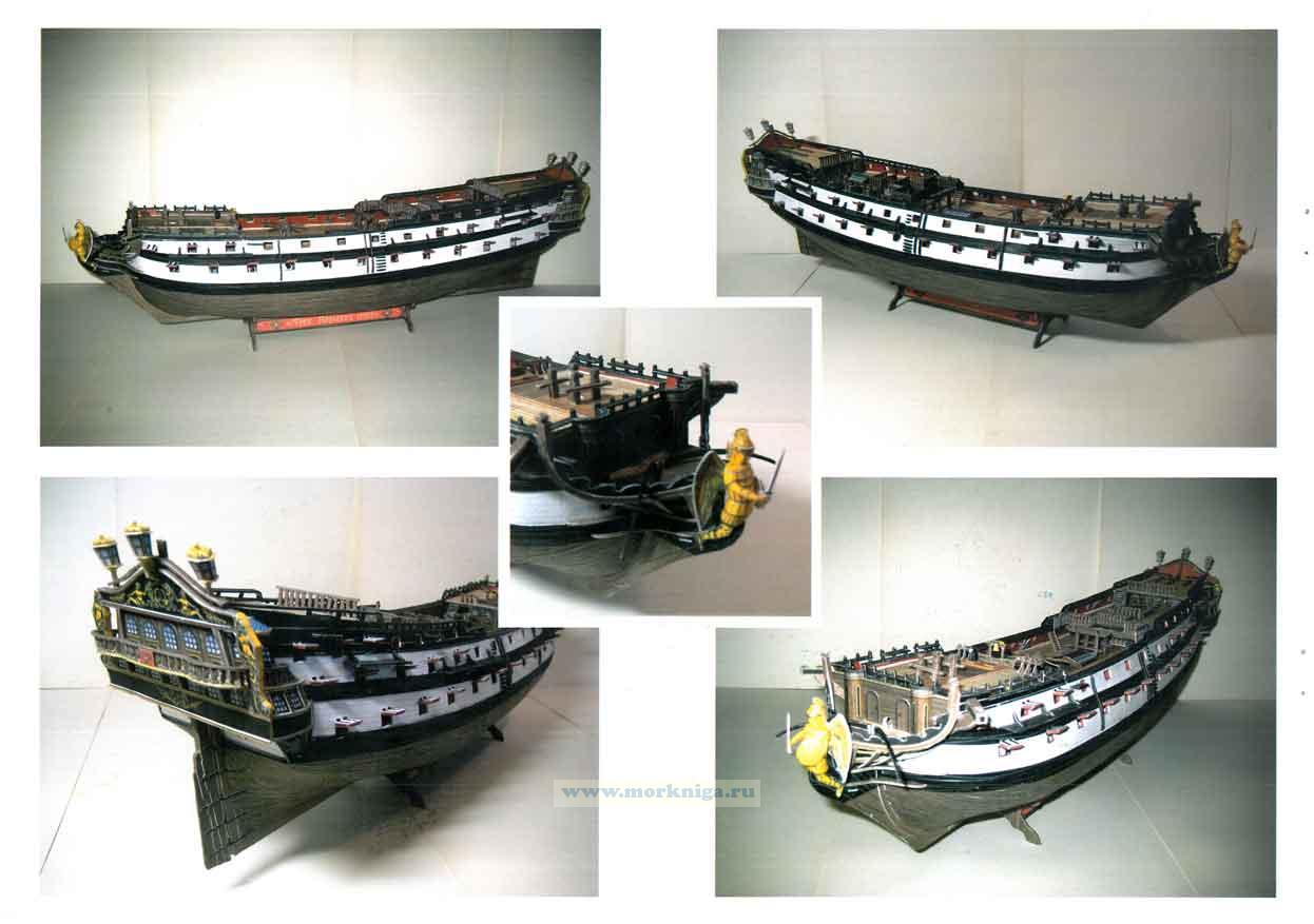 Сборная модель линейного корабля Трех иерархов ВМФ Российской Империи. 66-пушечный трехмачтовый линейный корабль "Три иерарха", названный так в честь первых епископов-богословов эпохи христианства, был построен в 1766 году.