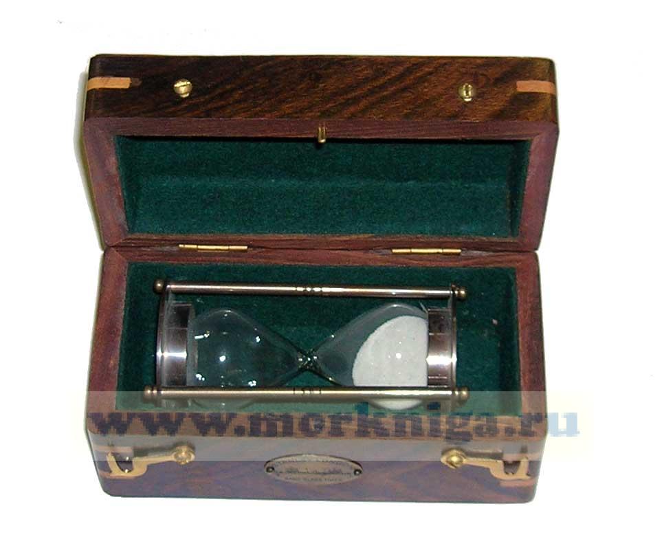 Песочные часы на 2 мин. в деревянном футляре из красного дерева.