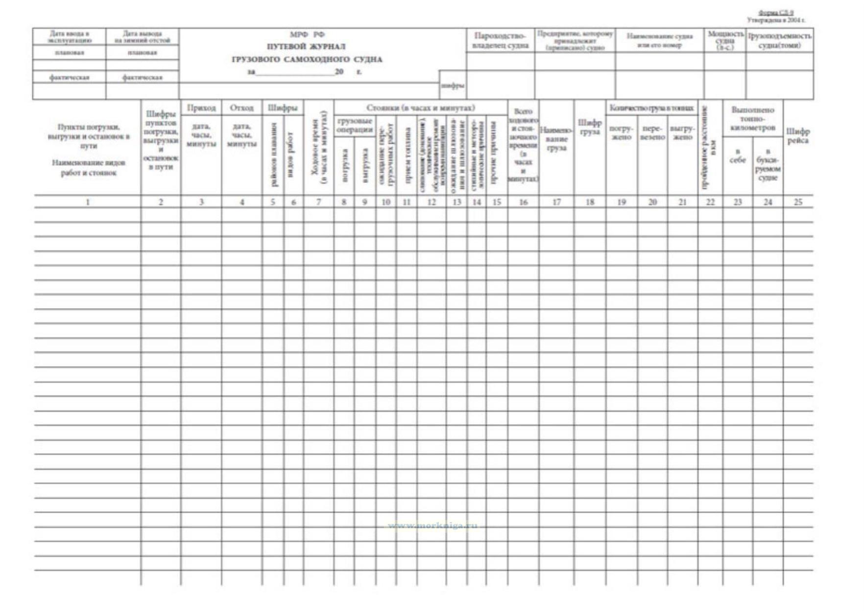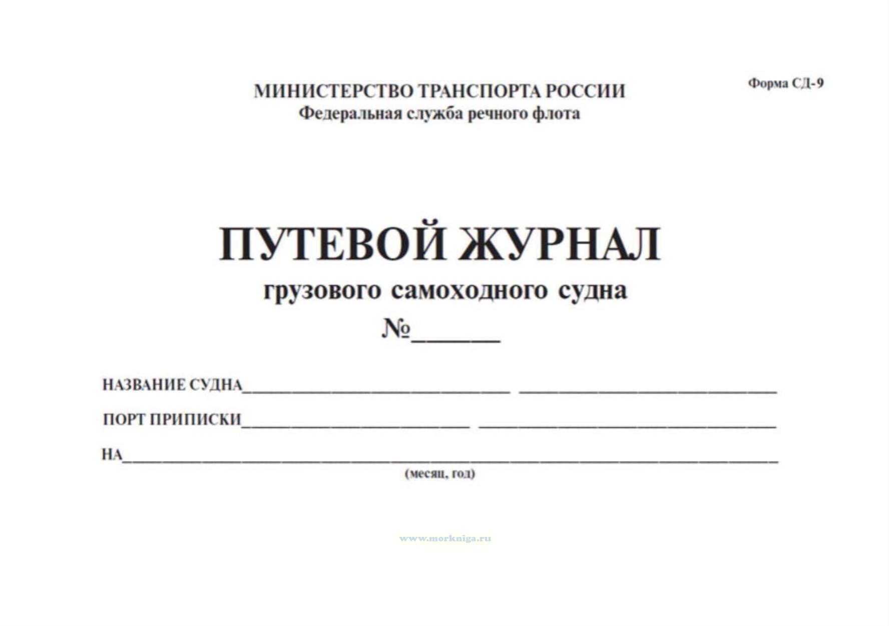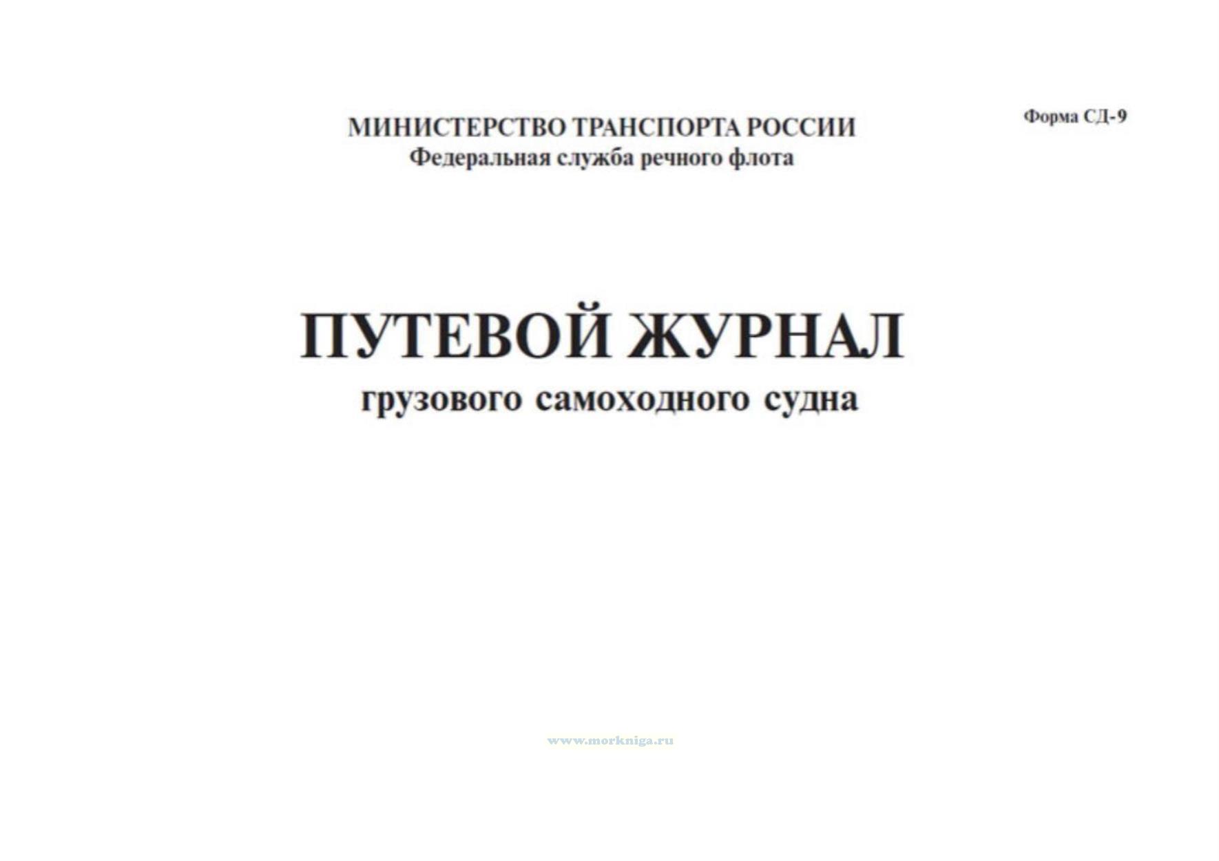 Путевой журнал грузового самоходного судна СД-09 предназначен для речных самоходных судов.