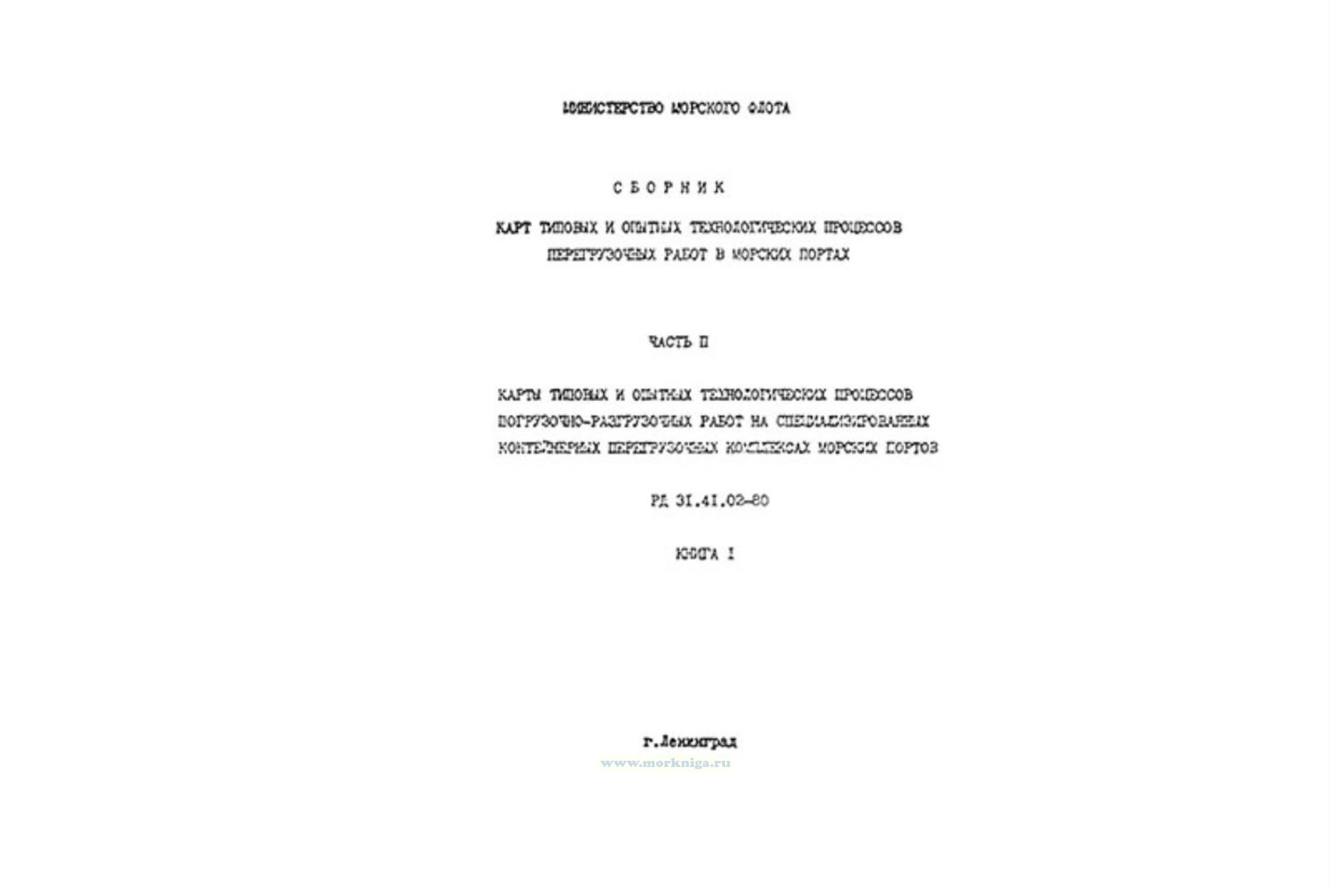См. также Книгу 2 РД 31.41.02-80 Карты типовых и опытных технологических процессов погрузочно-разгрузочных работ на специализированных контейнерных перегрузочных комплексах морских портов.