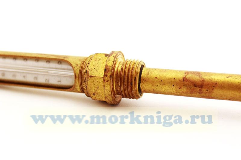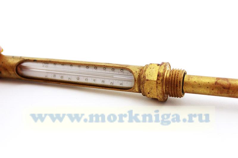 Сам термометр стекляный, помещен в защитный латунный корпус.