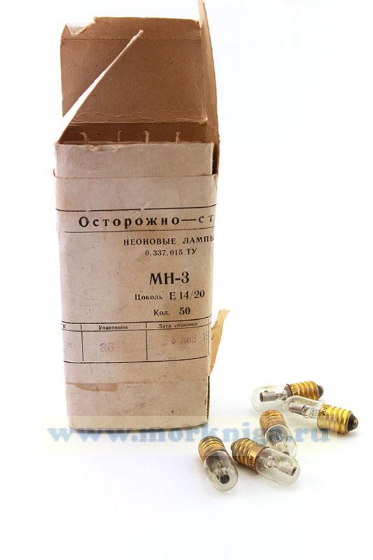 Неоновая лампа МН-3 применяется в качестве индикаторных, сигнальных элементов в различных судовых электротехнических и радиотехнических устройствах.