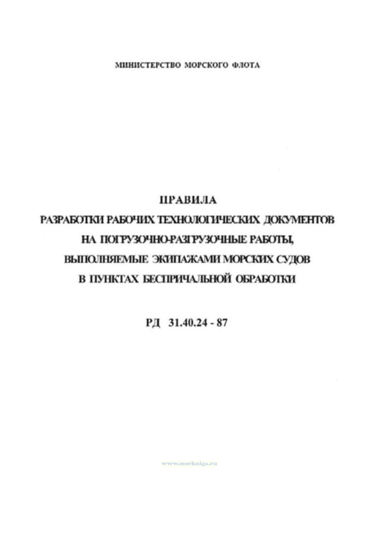 РД 31.40.11-95 Положение о разработке карт типовых и опытных технологических процессов погрузочно-разгрузочных работ в морских портах Росси