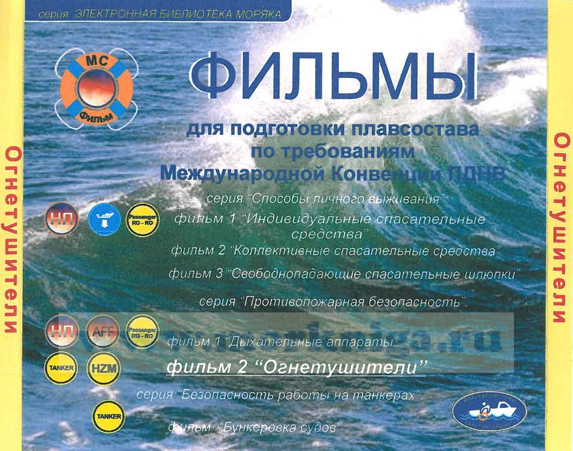 Фильм «Огнетушители», в нем представлены все основные типы применяемых на судах средств для ликвидации возгораний, показаны правила их использования.