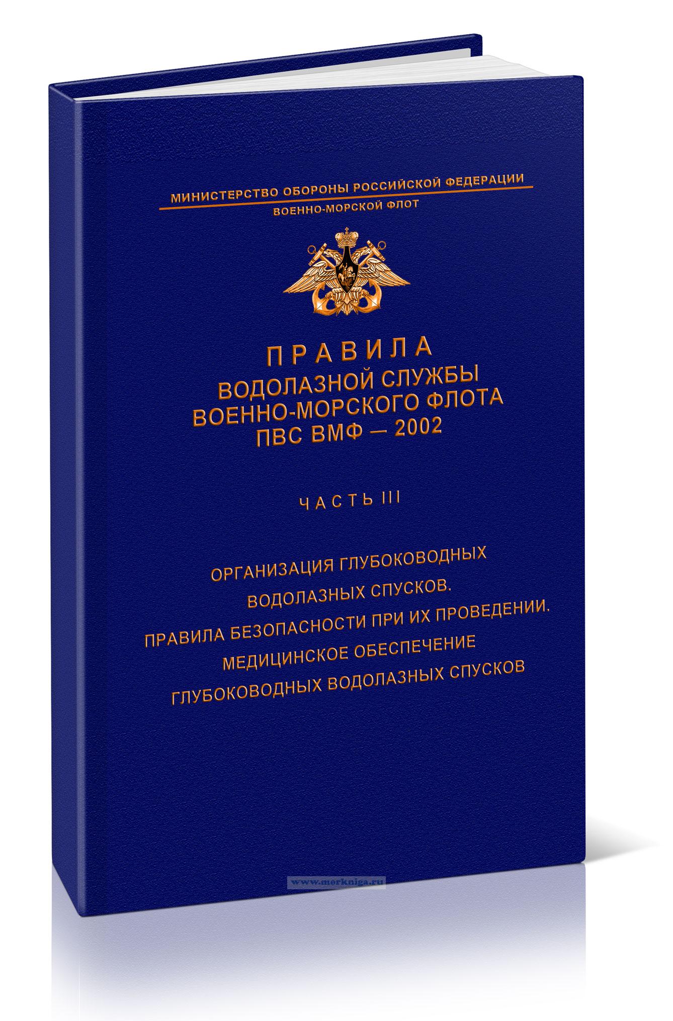ПВС ВМФ Правила водолазной службы военно-морского флота 2002. Часть 3. Организация глубоководных водолазных спусков в ВМФ и их медицинское
