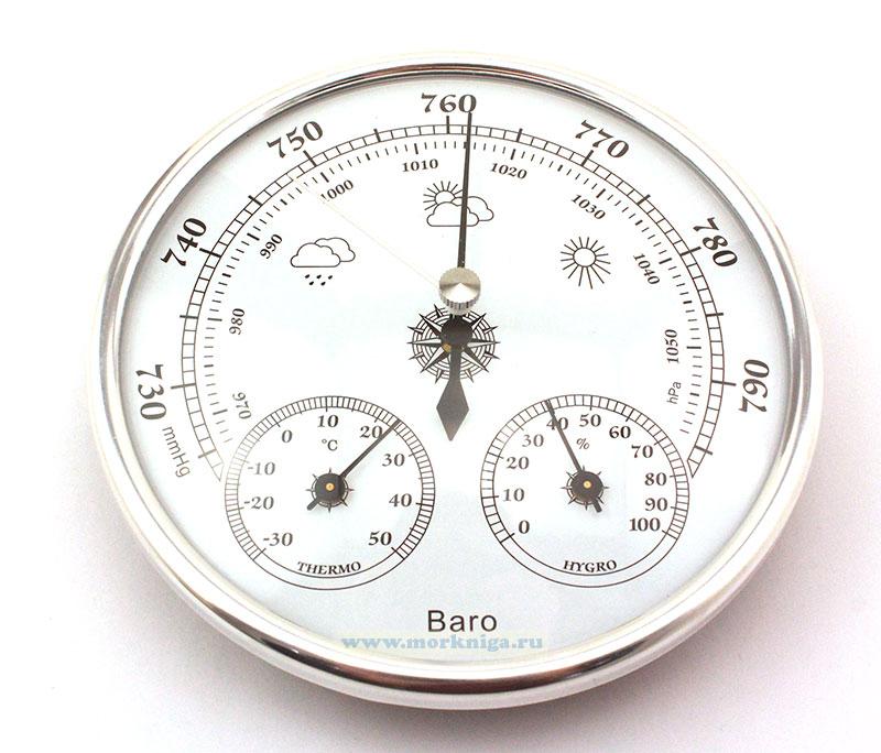 Барометр настенный с функцией термометра и гигрометра может применяться на маломерных судах для контроля изменений параметров температуры, влажности и атмосферного давления.