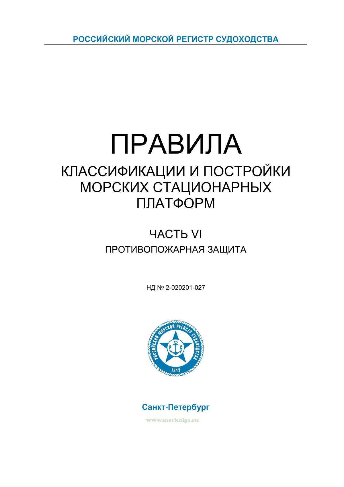 Настоящая версия части VI "Противопожарная защита" Правил классификации и постройки морских стационарных платформ Российского морского регистра судоходства (РС, Регистр) утверждена в соответствии с действующим положением и вступает в силу 1 января 2025 года.