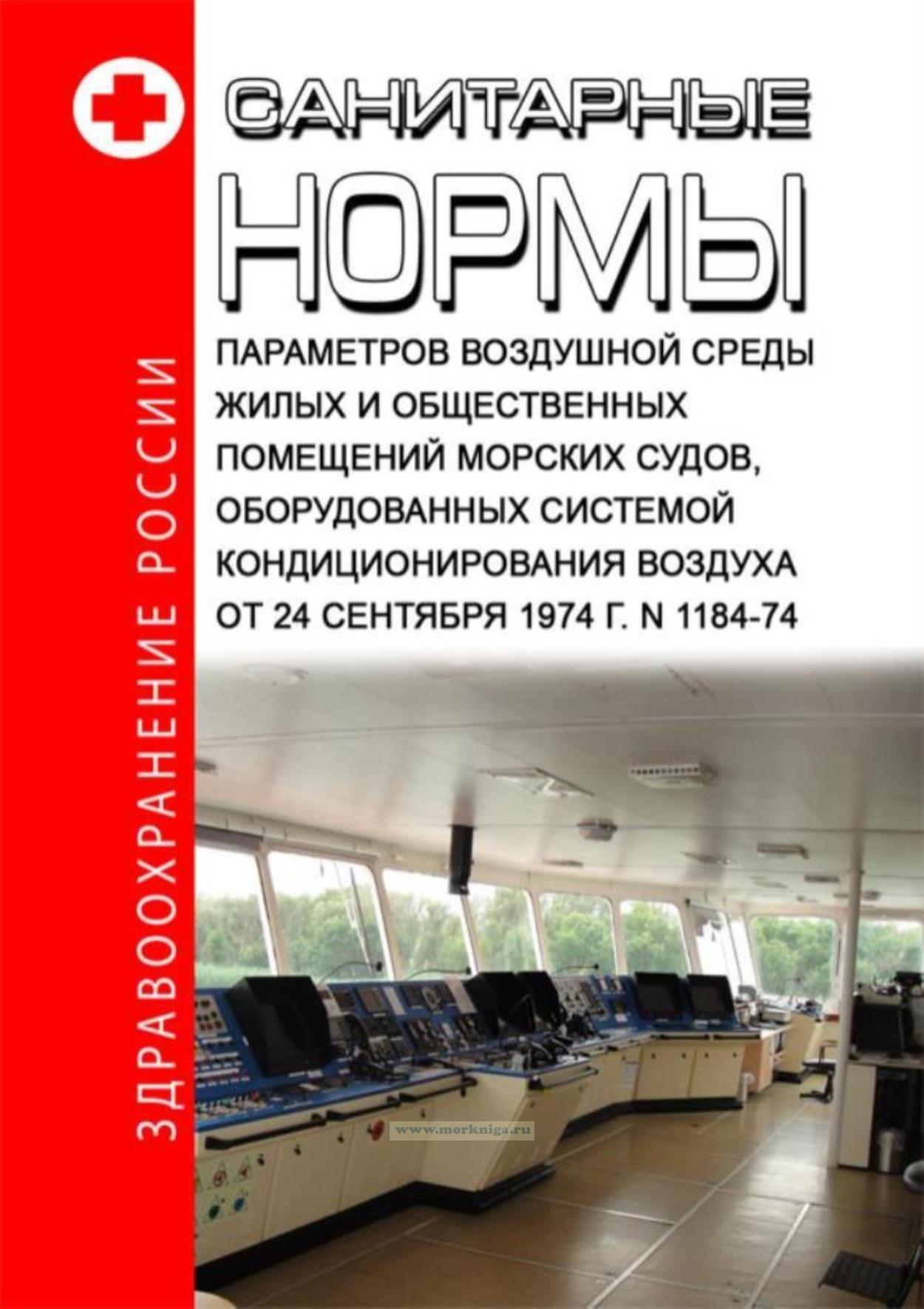 Санитарные нормы параметров воздушной среды жилых и общественных помещений морских судов, оборудованных системой кондиционирования воздуха от 24 сентября 1974 г. N 1184-74 разработаны НИИ гигиены водного транспорта Минздрава СССР.