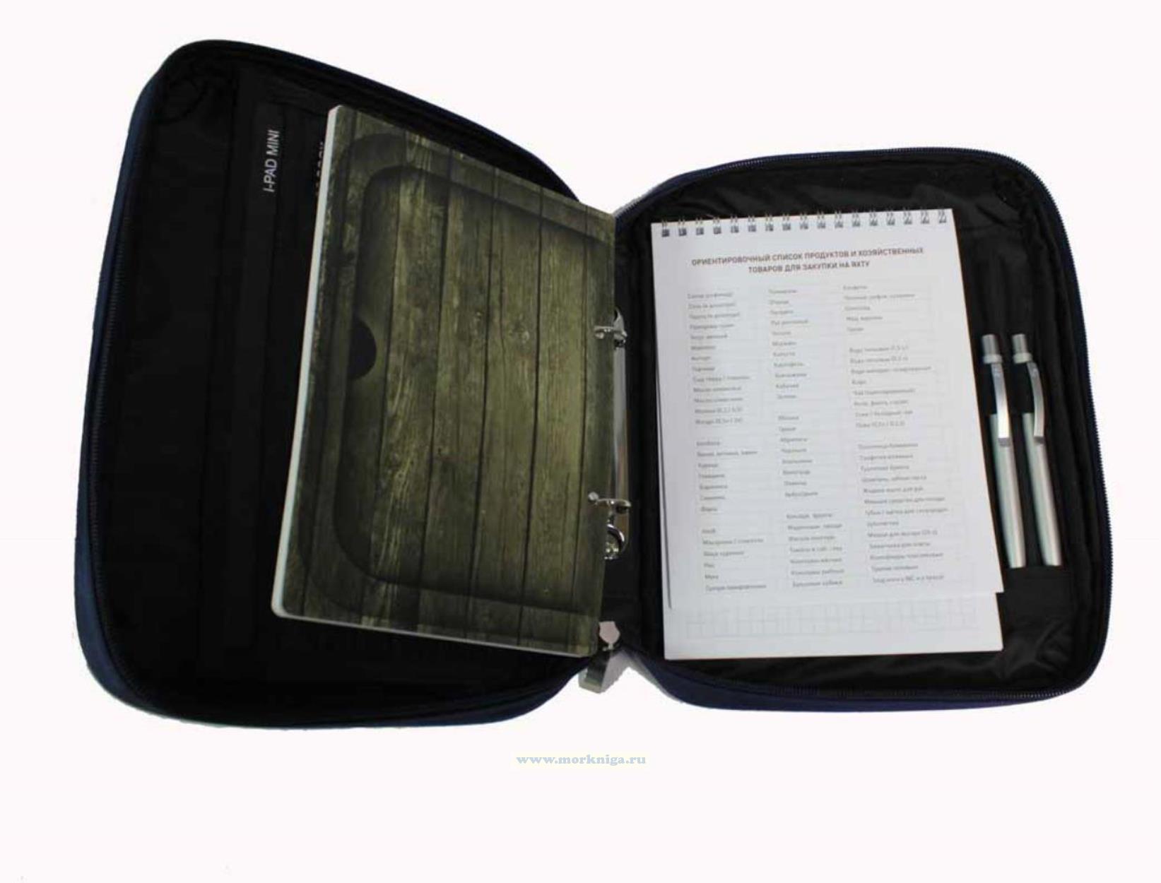 - блокнот шкипера, первые 25 листов которого - это ориентировочный список продуктов и хозяйственного инвентаря, закупаемых на яхту, а оставшиеся (в мелкую клетку) - для записей и расчётов.