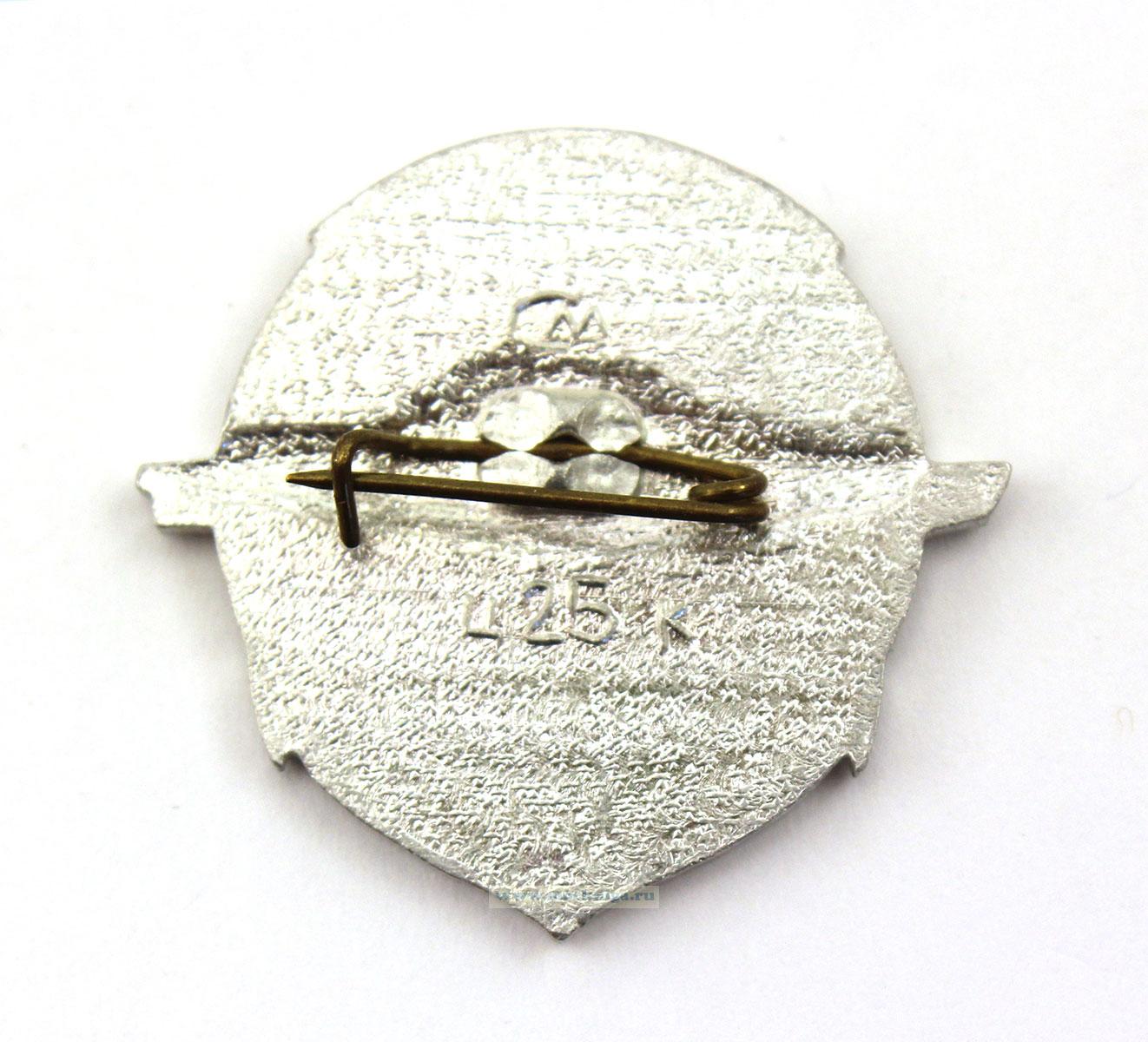 Знак имеет форму круга, наложенного поверх якоря. По центру объемное изображение подводной лодки на голубом фоне. Сверху полукругом надпись «1941-1945», снизу - «П.Л. Щука».