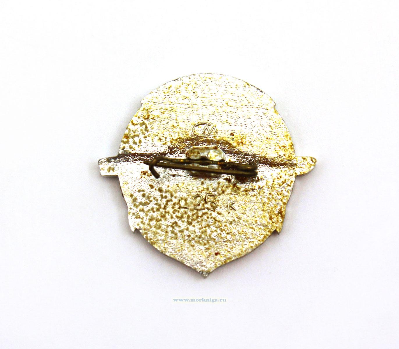Нагрудный знак "Флот ПЛ Малютка 1941-1945" имеет диаметр 2,5 см. Крепление: булавка