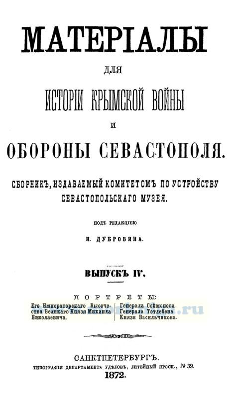 В книге содержатся : Описание атаки русских войск на Кадыкиойские высоты 13-го октября 1854 года, записки о сражении под Балаклавой, Инкерманское сражение, статьи иностранных газет о инкерманском сражении, донесение князя Меньшикова об участии в сражении Их Императорских Высочеств Князей Николая Николаевича и Михаила Николаевича, Крымский поход 1854 года, письма, статьи,приказы, донесения и др.