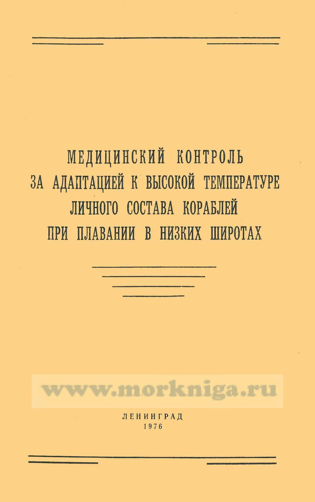 В методическом пособии рассматриваются механизмы тепловой адаптации моряков и практические методы оценки ее, нозологические формы, возникающие при срыве адаптации, первая помощь и лечение их, а также меры профилактики, которые должны предприниматься командиром, врачом и матросами. Пособие предназначено для слушателей факультета подготовки врачей для Военно-Морского Флота, а также корабельных врачей.