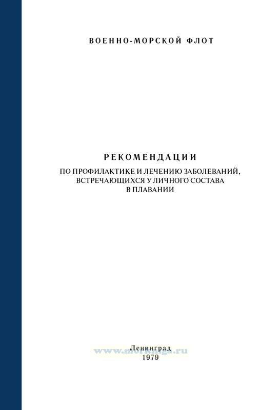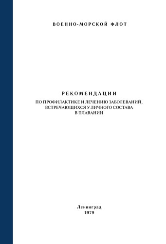Рекомендации предназначены для корабельных врачей, практически осуществляющих лечение и профилактику заболеваний в плавании, а также могут быть использованы врачами медицинских служб соединений, береговых баз и поликлиник.