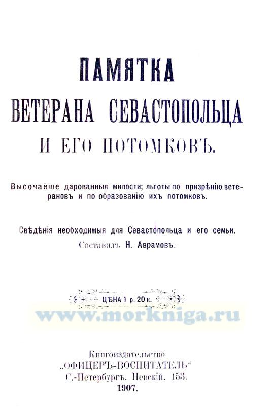 Содержание предлагаемой брошюры исчерпывается обстоятельно составленным на основании официальных документов, перечнем Высочайше дарованных милостей и льгот ветеранам-защитникам Севастополя, а равно их семьям и потомству. Независимо от этого, настоящая брошюра содержит в себе необходимые указания о порядке пользования льготами, с приложением разного рода форм прошений и в этом смысле является справочной книжкой не только для лиц, на которых распространяются действия Высочайше дарованных милостей, но и для различных правительственных и частных учреждений, а также и для должности лиц, имеющих отношение, по роду службы, с осуществлением великой идеи, выразившейся в Высочайшем Акте, объявленным в приказе по воен.вед. № 585 05 октября 1904 года.