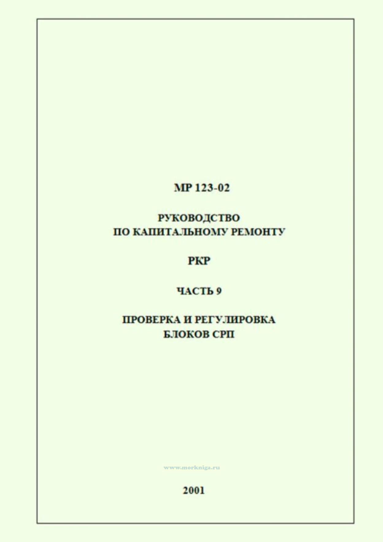 Настоящая часть Руководства включает раздел Проверка и регулировка блоков СРП на стендах в цехе ремонтного предприятия после капитального ремонта, проведенного в соответствии с разделами 23, 24, 26, 29 Руководства по капитальному ремонту РКР, части 12, 13, 14.