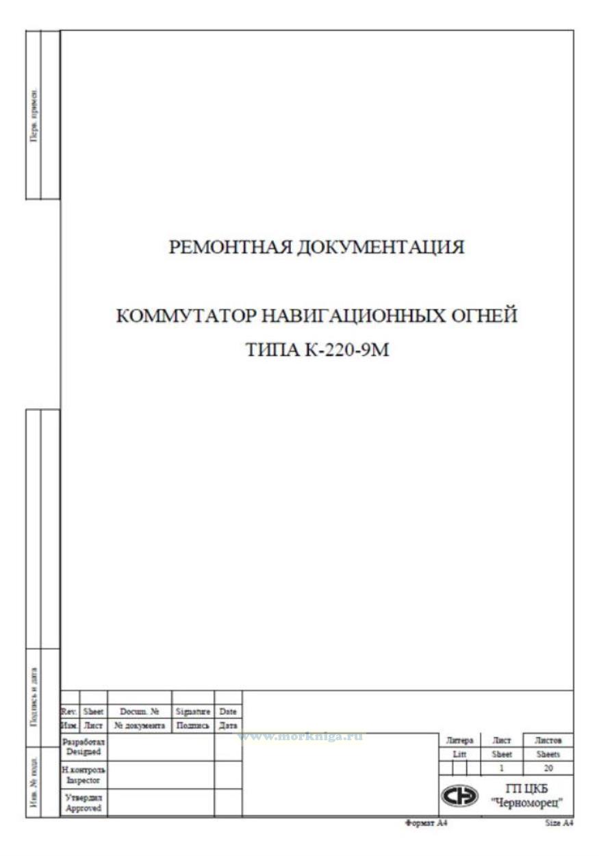 Настоящее Руководство предназначено для выполнения среднего ремонта коммутатора навигационных огней типа К-220-9М.
