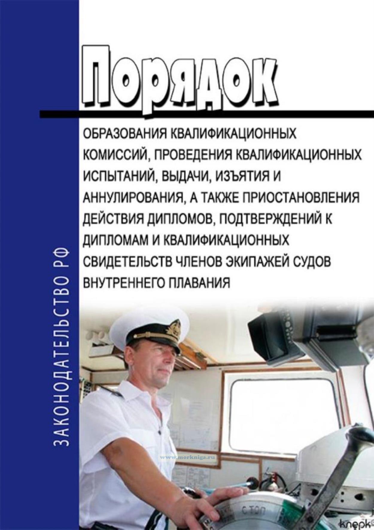 Порядок образования квалификационных комиссий, проведения квалификационных испытаний, выдачи, изъятия и аннулирования, а также приостановления действия дипломов, подтверждений к дипломам и квалификационных свидетельств членов экипажей судов