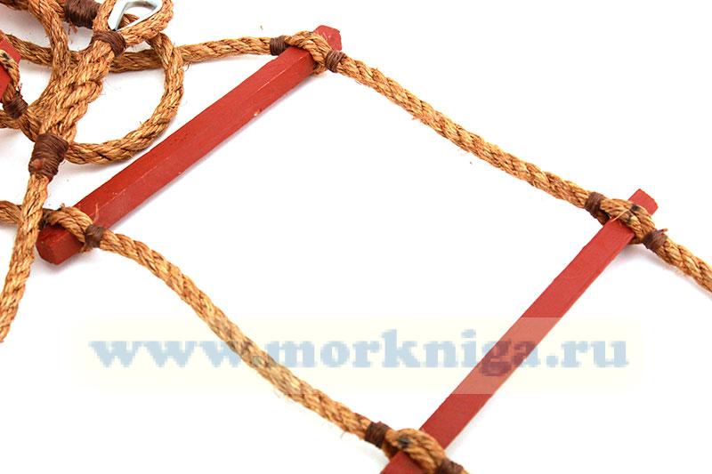 Лестница изготовлена из только натуральных материалов: дерева и джутового каната.