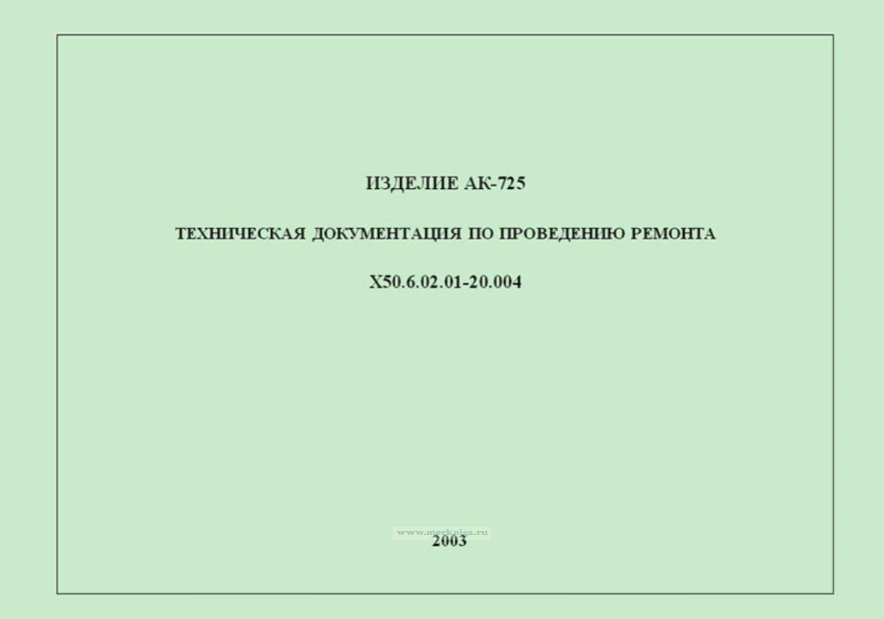 Техническая документация изделия АК-725 содержит руководящие документы, предназначенные для использования при проведении ремонта.