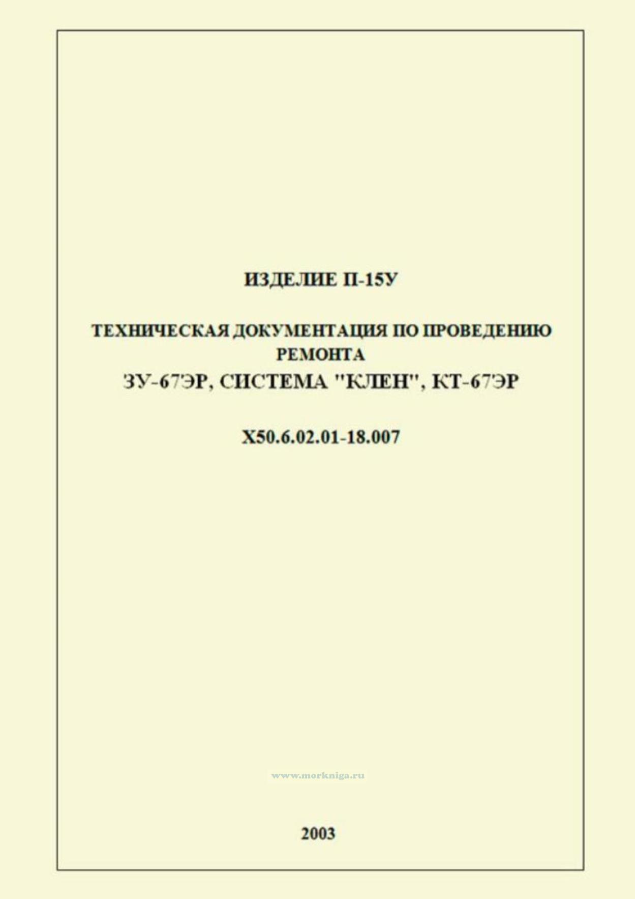 Техническая документация изделия ПУ-15У содержит руководящие документы для загрузочного устройства ЗУ-67ЭР, системы "Клен", КТ-67ЭР, предназначенные для использования при проведении ремонта.
